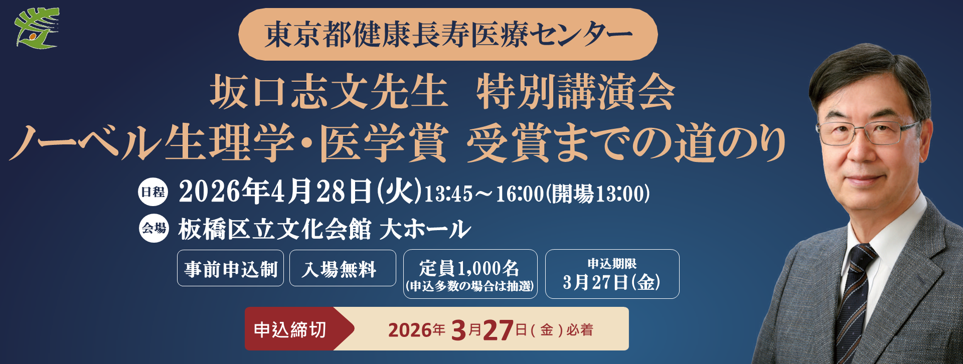 老年学・老年医学公開講座 坂口志文先生 特別講演会 を開催します