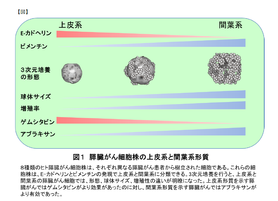本研究では、膵臓がん細胞がさまざまな異なったレベルの上皮系および間葉系の特徴を持っていることを明らかにしました。 3D培養法は、膵臓がん細胞株の多様性を調べるのに有用であり、膵臓がんの個別化治療法の開発に重要な役割を果たす可能性があります。