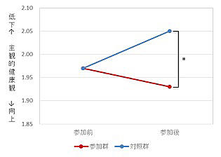 図2:化粧ケア参加前後の主観的な健康観の変化(*p<0.05)
